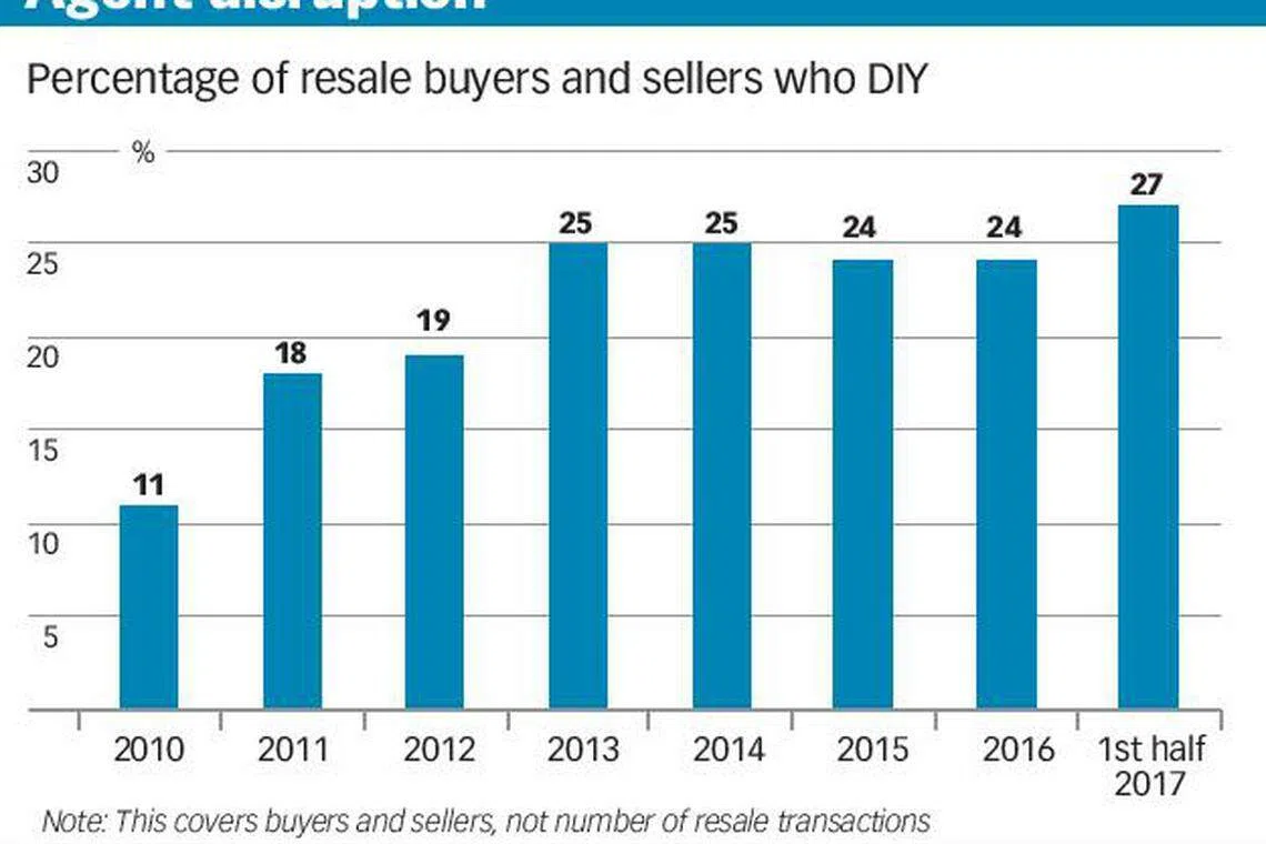 The number of do-it-yourself (DIY) buyers and sellers has shot up to 5,800 in the first half of 2017, compared to 9,900 for the whole of 2016. There are no separate figures for DIY buyers alone, but HDB acknowledges that this group is on a definite upclimb.