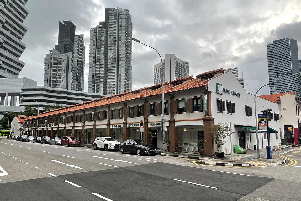 A ROW of 17 conservation shophouses in the Kampong Glam area currently operating as the 88-room Hotel Clover in Jalan Sultan is being sold for S$74.8 million.