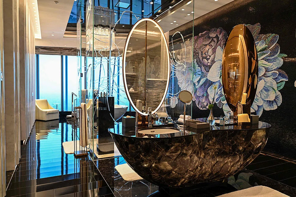 The hotel occupies the top floors of the 632-metre Shanghai Tower in the city's financial district, the second-tallest building in the world after Dubai's Burj Khalifa.