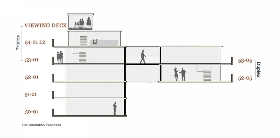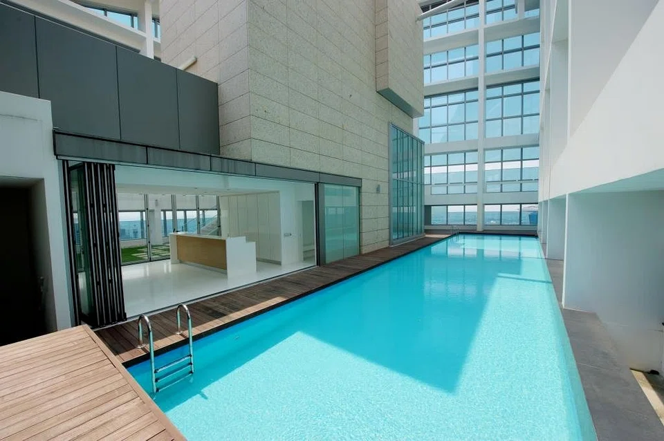 The five penthouses come with 24 bedrooms and a 25-metre rooftop pool, and occupy levels 50 to 54. The largest penthouse in the collection is a 11,012 sq ft triplex or three-storey unit.