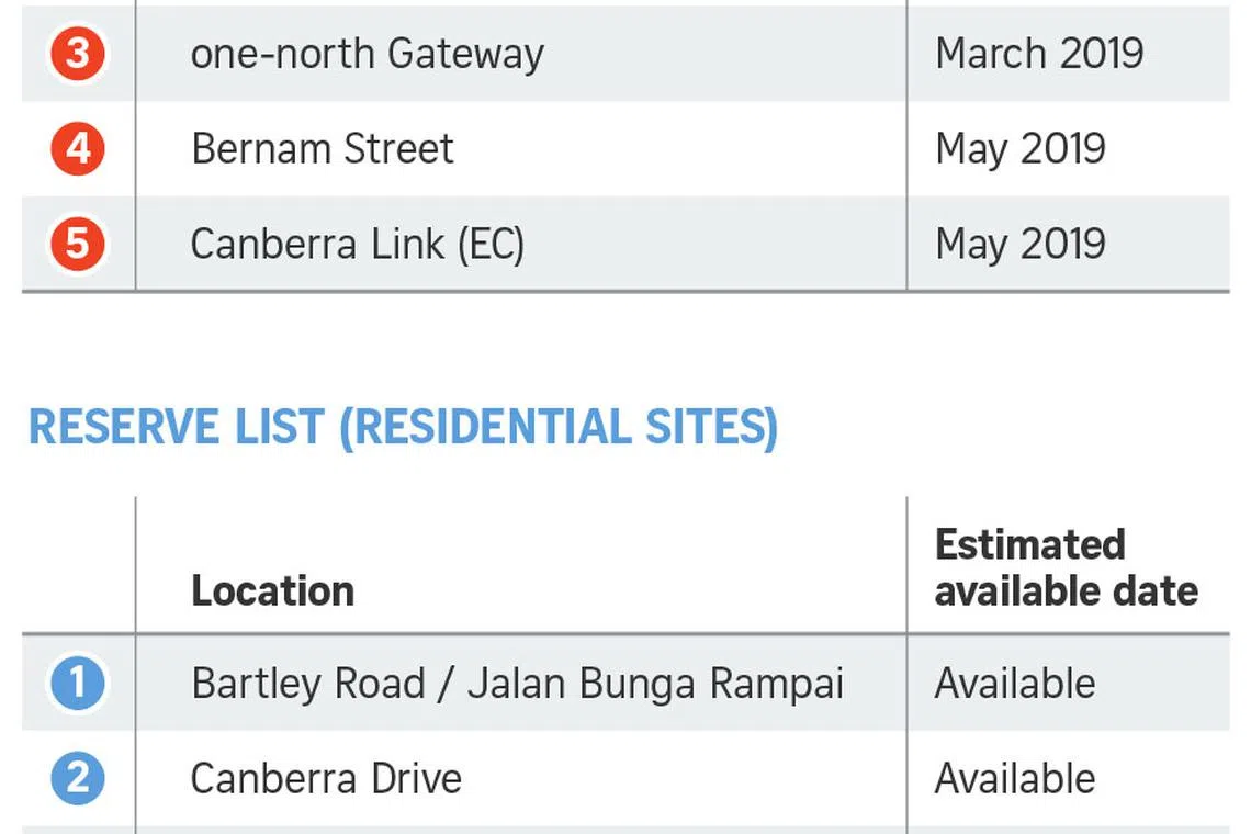 The H1 2019 reserve list will have a white site along Woodlands Avenue 2 for a mixed-use development.