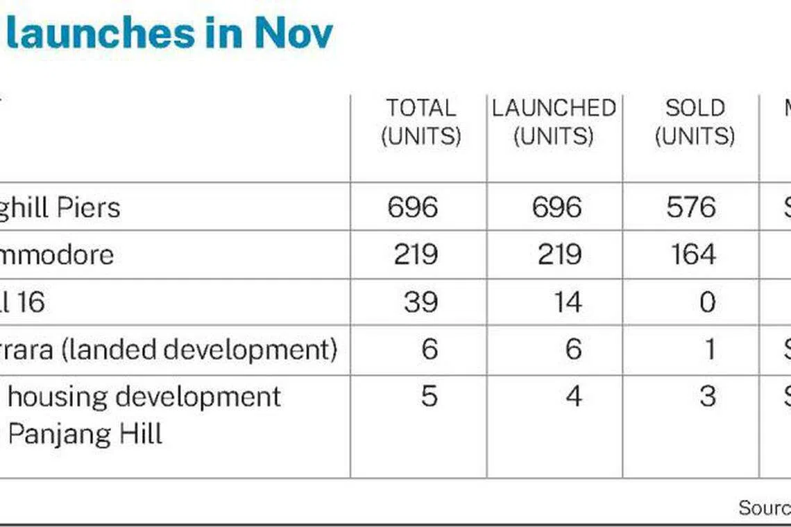 Analysts say that sales in November were driven largely by CanningHill Piers and The Commodore, which collectively accounted for nearly 48 per cent of the total sales tally for the month.