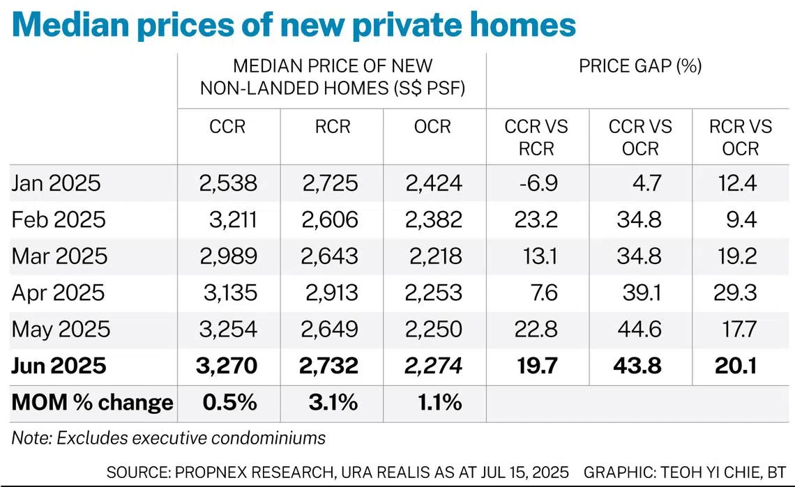 The price gap between the CCR and RCR also narrowed to 19.7 per cent in June – the tightest it has been in the last few years, said Wong.
