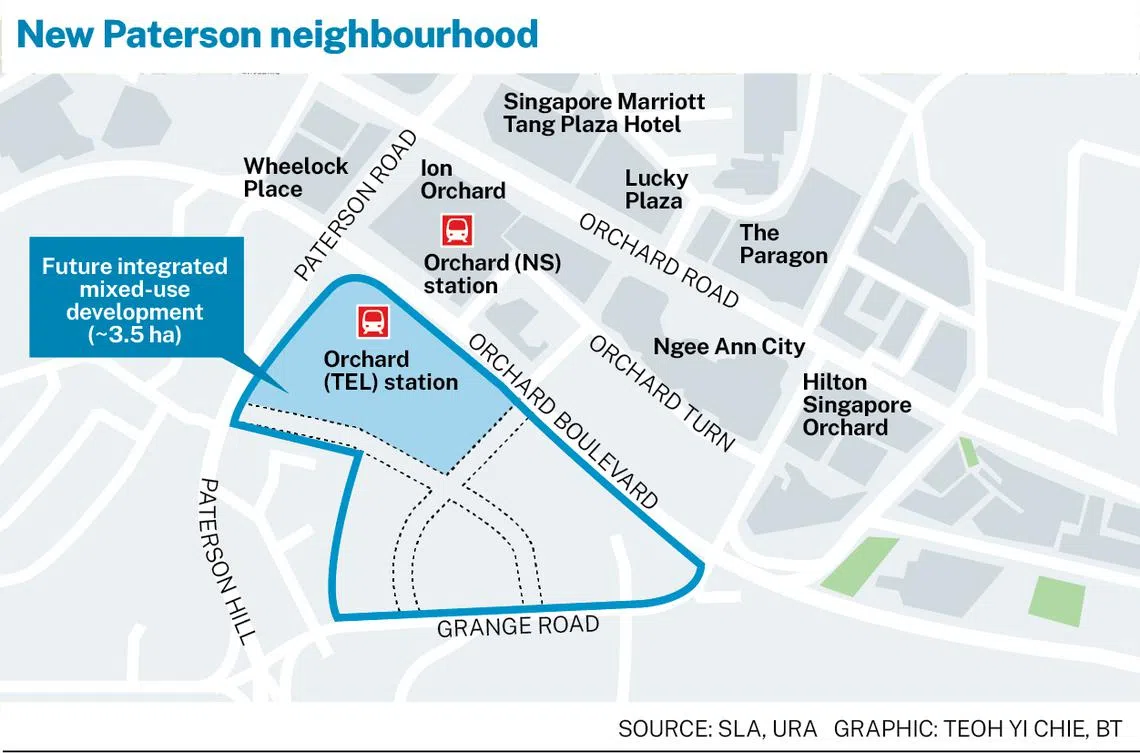 The Paterson neighbourhood will have frontages along Paterson Road, Orchard Boulevard and Grange Road; the entire site is on state land, which should facilitate the realisation of the plans through the government land sales (GLS) Programme, observers said.