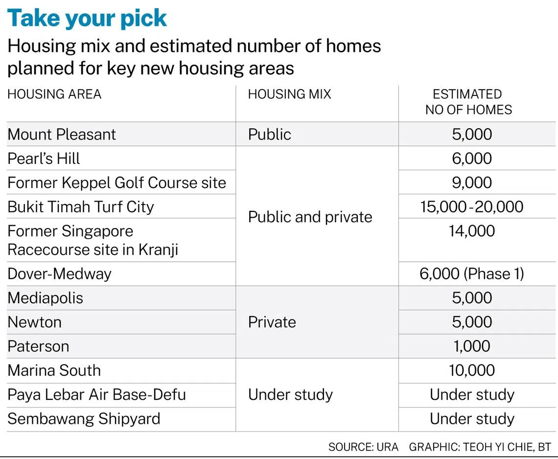 In the north, the site occupied by the former Singapore Racecourse in Kranji will be redeveloped into a new housing estate with about 14,000 public and private homes in a lush, riverine setting, with new leisure and recreational activities, said URA.