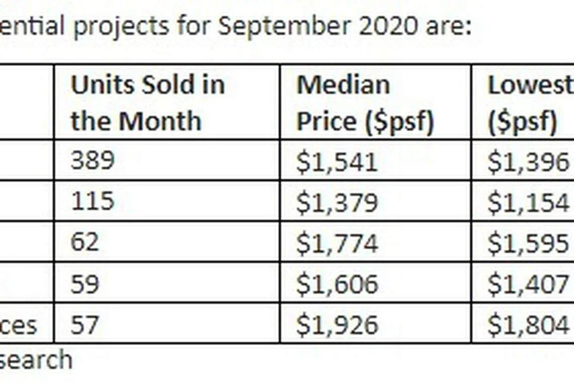 It is the highest sales volume notched since July 2018's 1,724, and marks the fifth consecutive month of increase in monthly sales since the "circuit breaker" in April 2020. The figure is also 4.6 per cent higher than the 1,270 units sold in September 2019.
