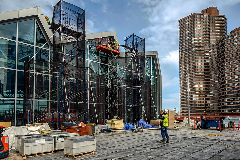 Construction crews are putting the finishing touches on a major expansion of New York City's main convention hall, the Javits Center. By early summer, it should be ready again to host trade shows, corporate meetings and public events.