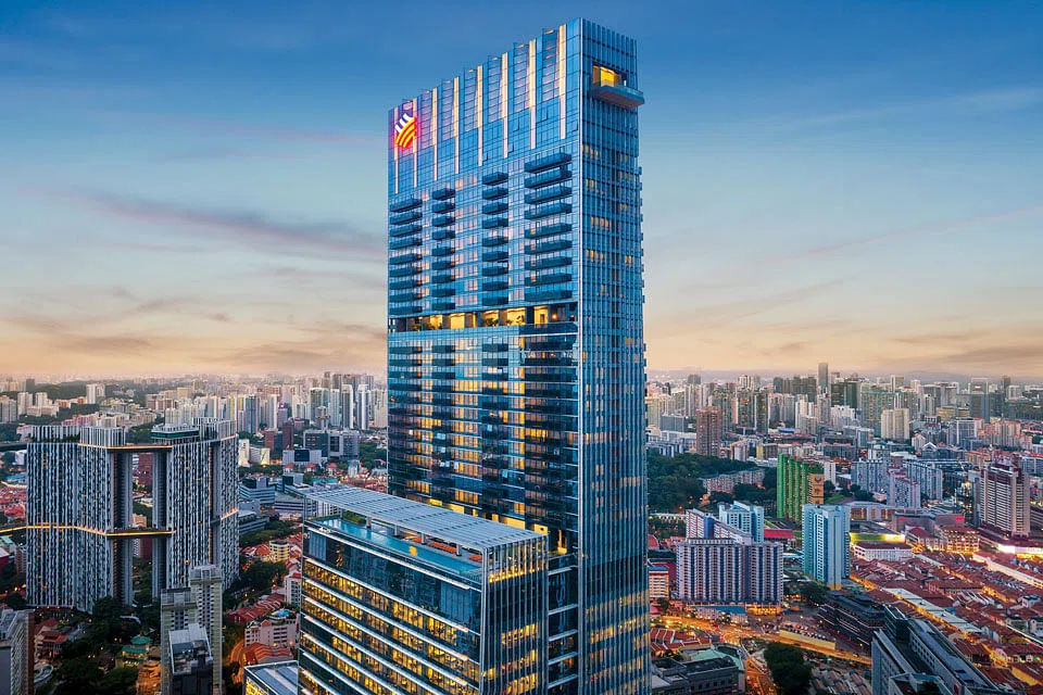 The biggest of these "super penthouses" in Singapore is in the 950 ft high Wallich Residence in Tanjong Pagar, with a floor area of 21,108 square feet (sq ft). Spanning levels 62 to 64, the property has five bedrooms, a family room, a viewing deck, a private garden, a 12 metre pool, a cabana, a jacuzzi, an entertainment room and bar facilities.