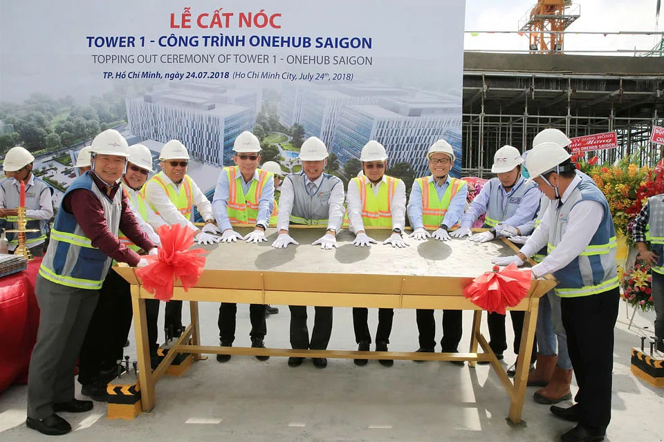 ASCENDAS-Singbridge and its joint venture partner, Saigon Bund Capital Partners on Tuesday celebrated the topping out of Office Tower 1 at OneHub Saigon, Ho Chi Minh City's first fully integrated business park in Saigon Hi-Tech Park.