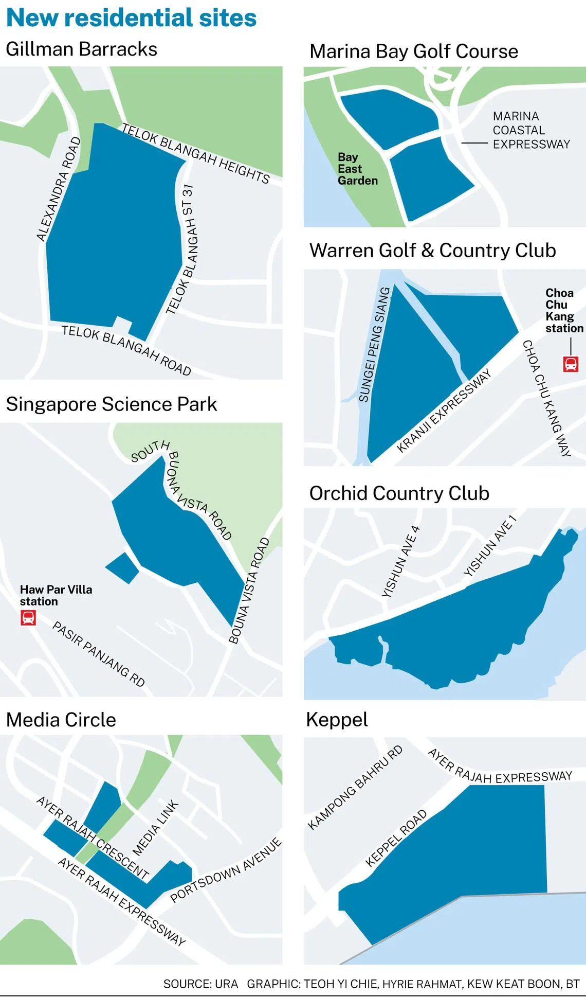 Analysts highlighted the rezoning of existing golf courses Orchid Country Club in Yishun and Warren Golf & Country Club in Choa Chu Kang, where leases end in 2030. Marina Bay Golf Course, which closed its doors in July 2024 after its lease expired, has also been earmarked for residential use.