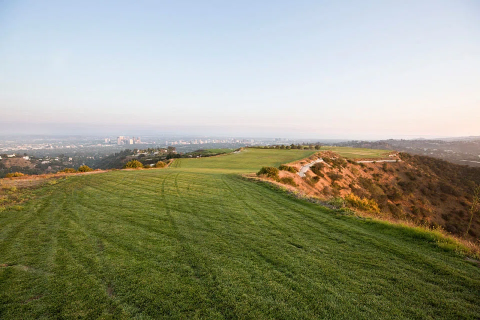 With views into some of Los Angeles' priciest mansions and their swimming pools below, it had the surreal feel of an empty, mountaintop golf course in the middle of a city, with large, manicured lawns.