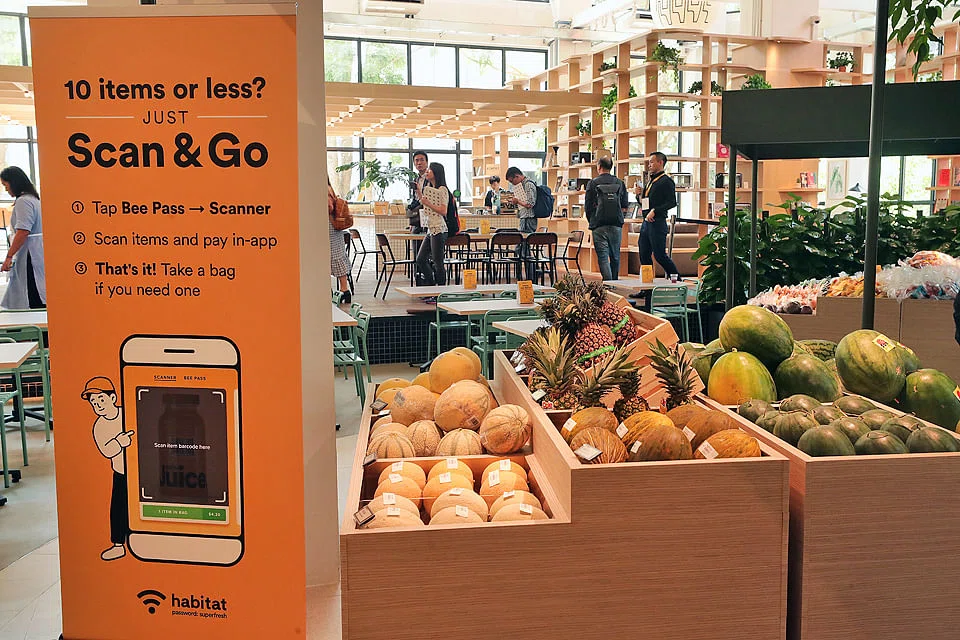 Habitat by Honestbee was the first test case to demonstrate the possibility of integrating a large scale retail operation in a traditional industrial precinct. Situated in a 60,000 sq ft space, it features a high-tech supermarket and a dining area. All purchases inside Habitat are done through cashless transactions and there is an automated collection point. Both are world firsts.