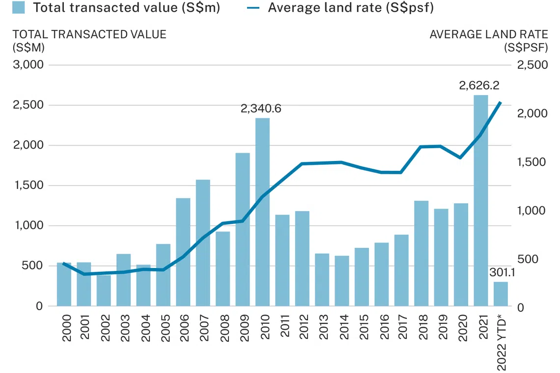 From where we stand, this is due to rising GCB values, supported by the fact that the average price in terms of per square foot (psf) of land area for GCB deals rose 55 per cent between 2010 and 2021.