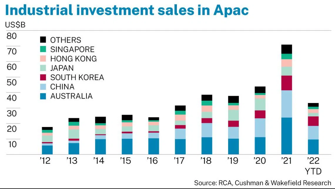 Apac industrial investment has reached about US$33 billion year to date (as at Sep 13), with full-year volumes unlikely to surpass 2021 levels of US$70 billion, a historical high.