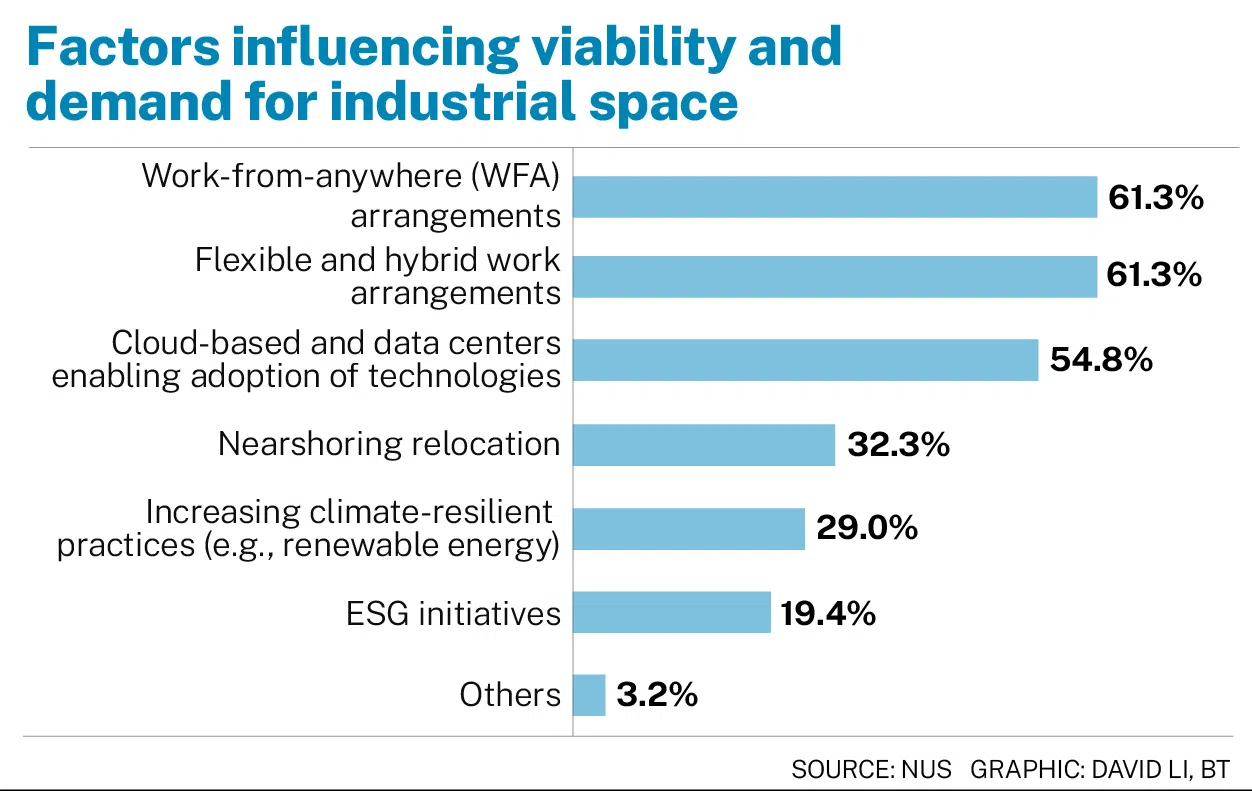 Most respondents felt that work-from-anywhere arrangements that would allow companies to relocate operations to cheaper overseas locations, as well as hybrid work arrangements, will affect viability and demand for industrial space.