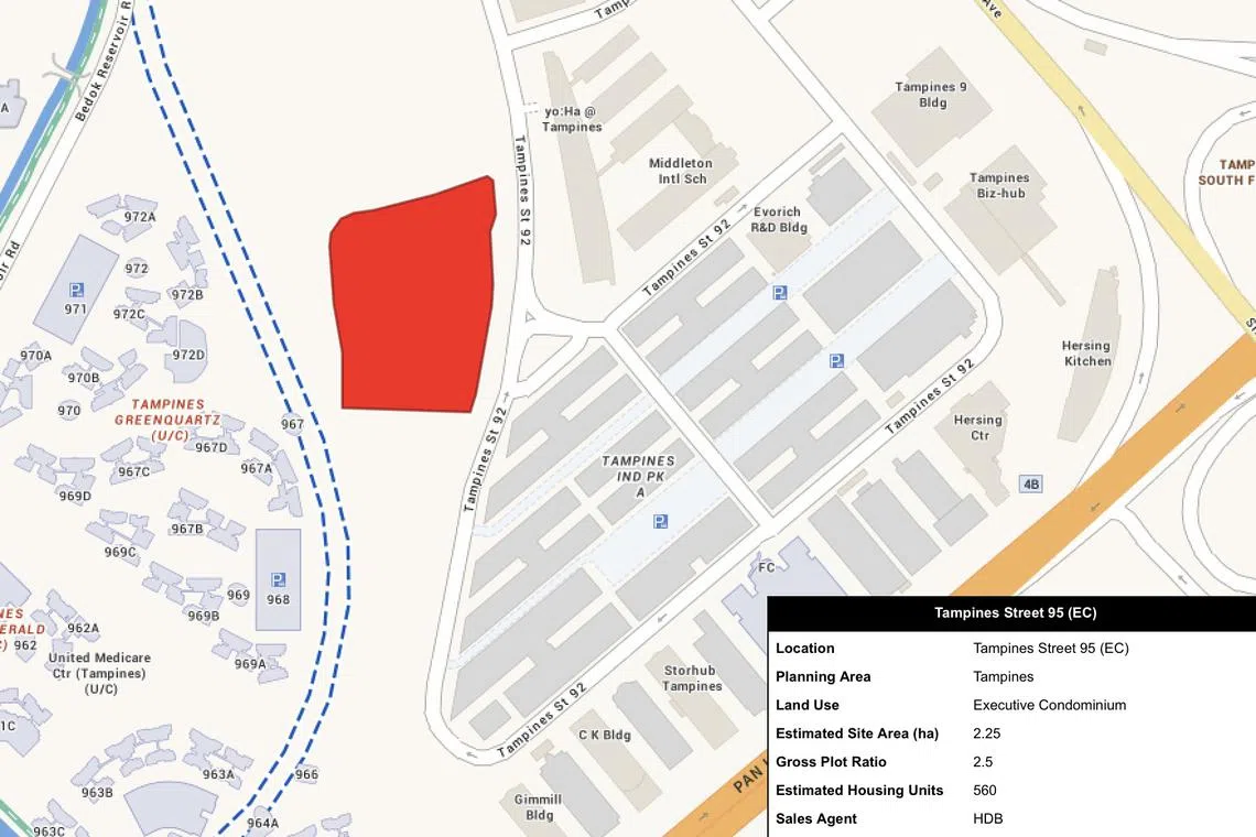 The four new sites on the H2 2023 reserve list are an executive condo (EC) parcel in Tampines Street 95 for 560 homes, and three private-housing plots: