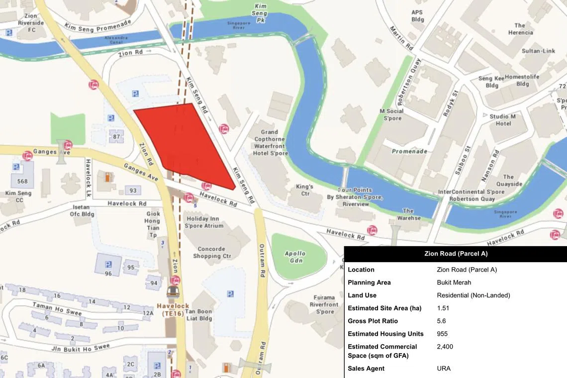 Analysts also anticipate strong interest in the 1.51 ha site along Zion Road, near the Great World City shopping mall in the River Valley area. The site can take 955 units and 2,400 sq m of commercial space, as well as a minimum 600 sq m GFA for childcare centre services and serviced apartments.