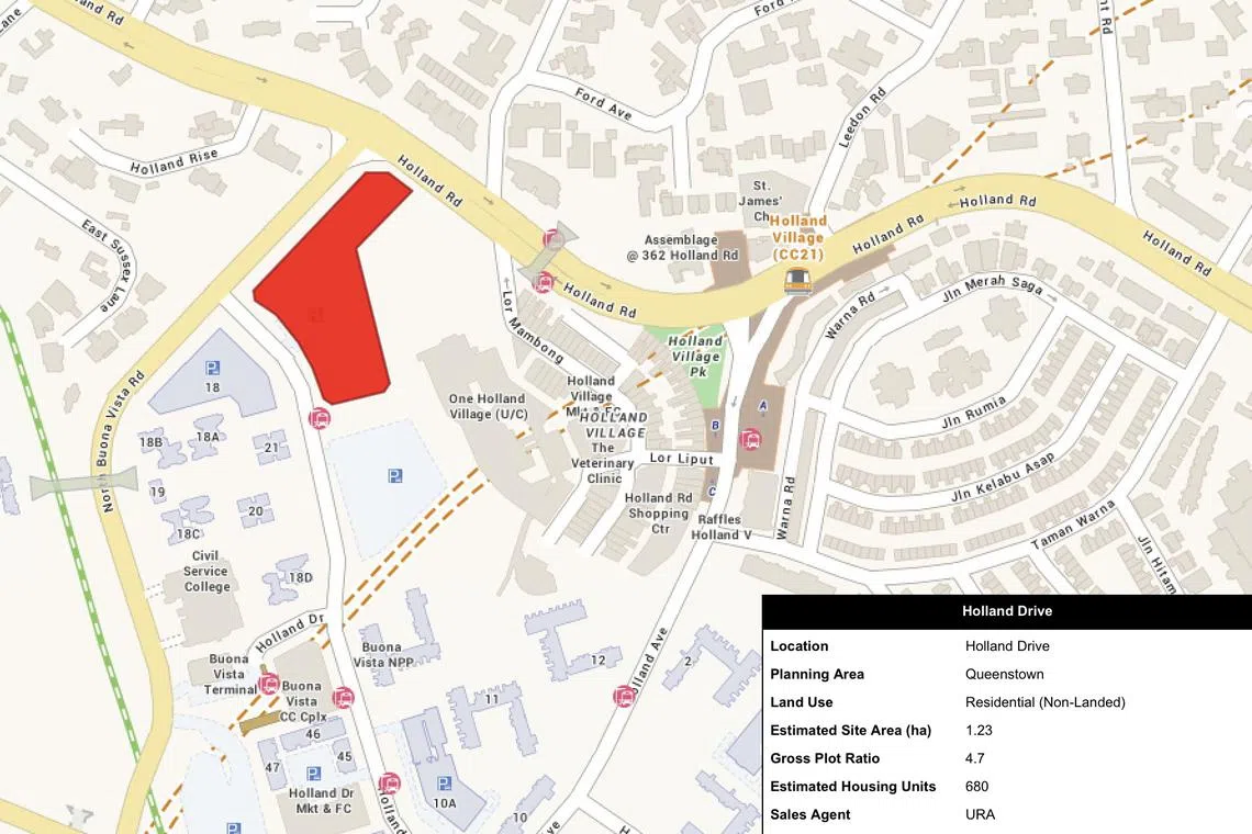 - A 680-unit plot along Holland Drive, near Holland Village MRT station, spanning 1.23 ha;