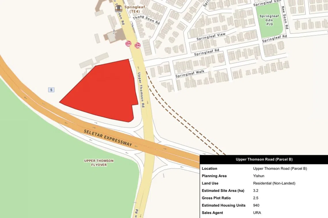 Upper Thomson Road (Parcel B) spans 3.2 ha and will yield 940 units.