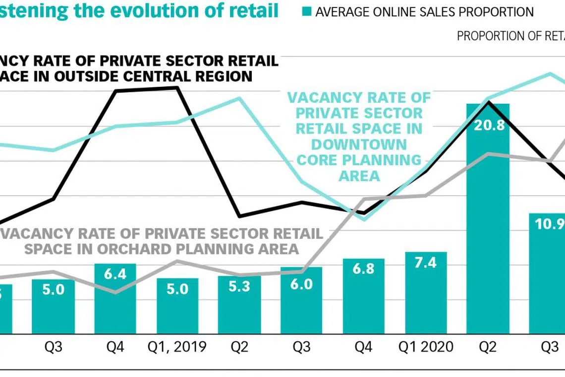 Orchard Road, city centre and destination malls may struggle while suburban malls should thrive. CapitaLand marked down valuation of ION Orchard and Jewel Changi Airport by 8 per cent and 17 per cent respectively as at end-2020 compared with a year ago.