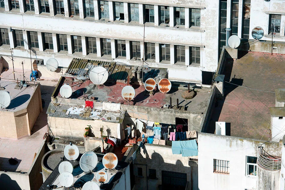 Clotheslines, satellite dishes and tangled cables have sprouted on the deteriorating facades of the buildings, constructed nearly a century ago under French rule. What was once a feted blend of Moroccan and European architecture is falling apart under the weight of an expanding urban population and neglect.