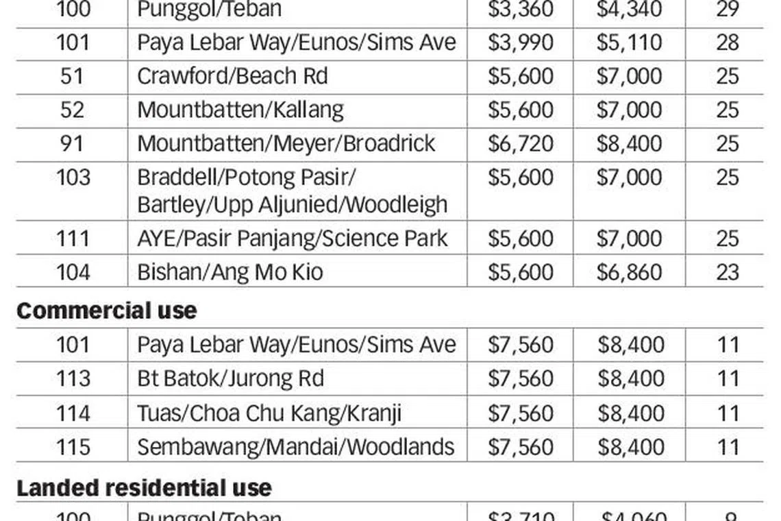 The rates are stated according to use-groups across 118 geographical sectors. These rates are also up for commercial and landed residential uses - at an average of 3.8 per cent and 0.3 per cent respectively.
