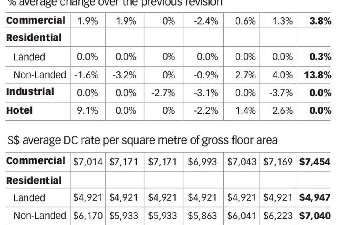 WITH collective-sale fever heating up in Singapore, the development charge (DC) rates for non-landed residential use has been raised by a sharp 13.8 per cent on average.