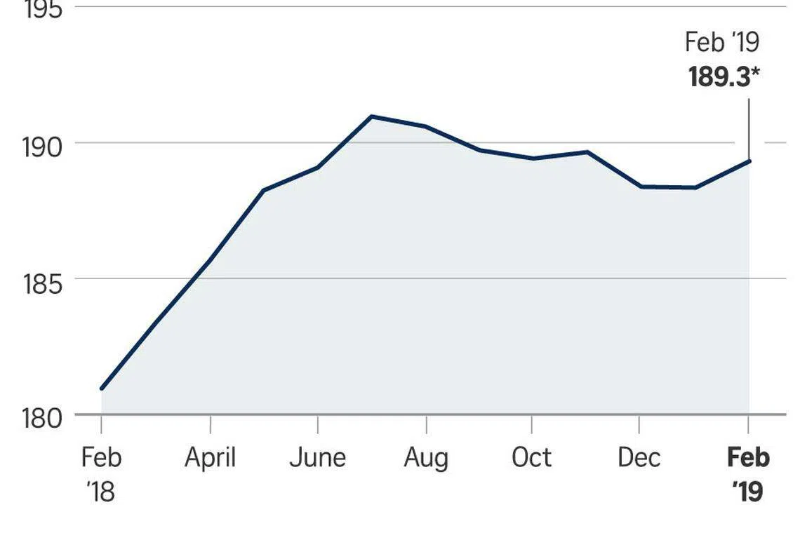 It was the largest price increase since July 2018, with year-on-year prices up by 4.6 per cent compared to February 2018.