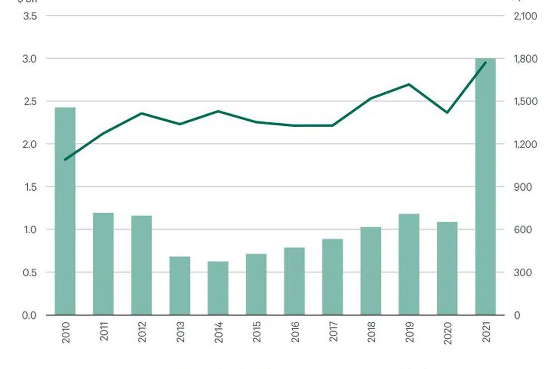 CBRE noted that 40 deals worth some S$1.22 billion were recorded in H2 2021, bringing the full-year tally to 99 with a total transaction value of S$3 billion. That surpassed the previous record of about S$2.43 billion set in 2010, and is nearly triple the S$1.09 billion in 2020.