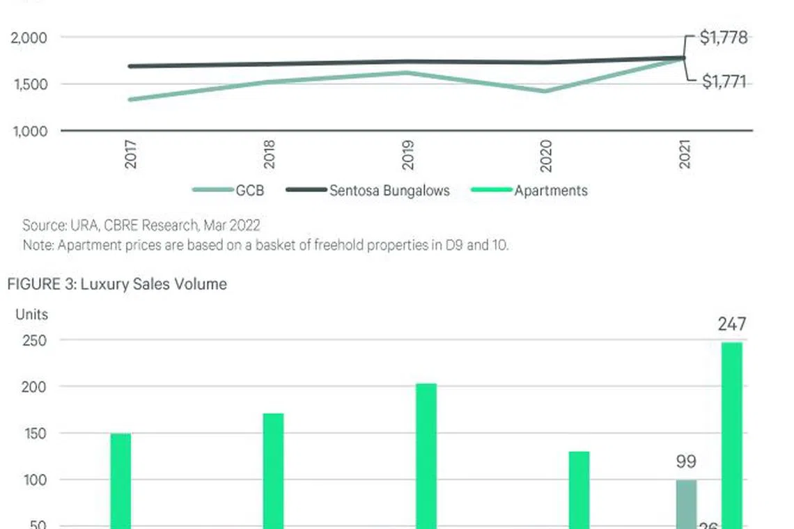 Singapore luxury apartment sales double in 2021; GCB deal value soars to new high