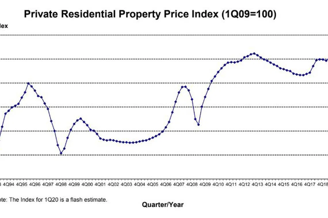 THE Urban Redevelopment Authority (URA) flash estimate for the first quarter of 2020 shows that its overall price index for private homes shrank 1.2 per cent over the preceding quarter.