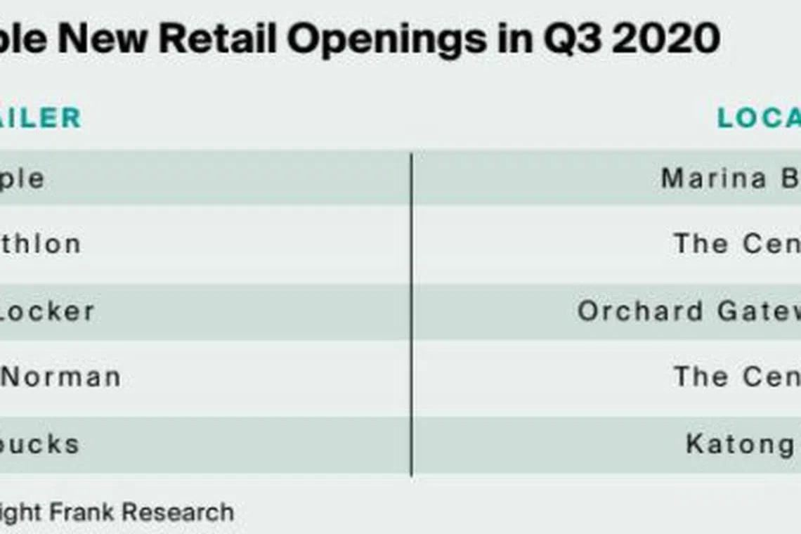 Other notable retail openings in the three months include store expansions such as Foot Locker at Orchard Gateway @ Emerald and Decathlon at The Centrepoint.