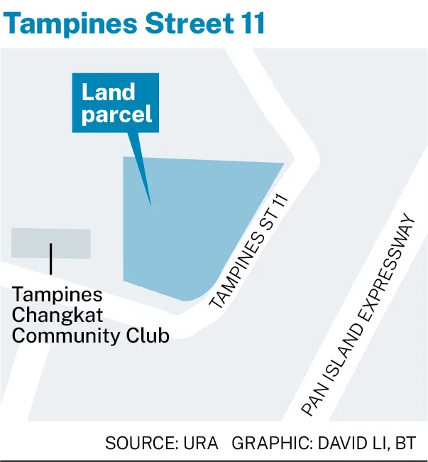 The site is near a GLS site on Tampines Avenue 11, which was awarded in 2023 to UOL, Singapore Land and CapitaLand Development at S$1.21 billion, or S$885 per square foot per plot ratio.