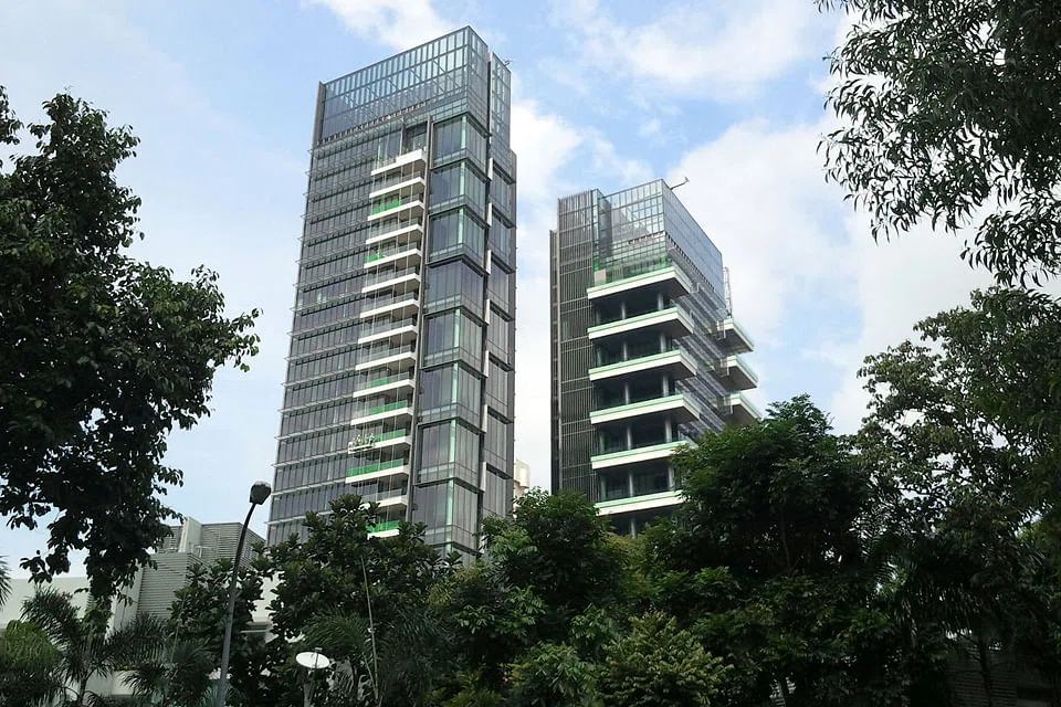 Wallich Residence occupies the top 26 levels of the development's 64-storey tower; below the apartments are the offices, known as Guoco Tower.