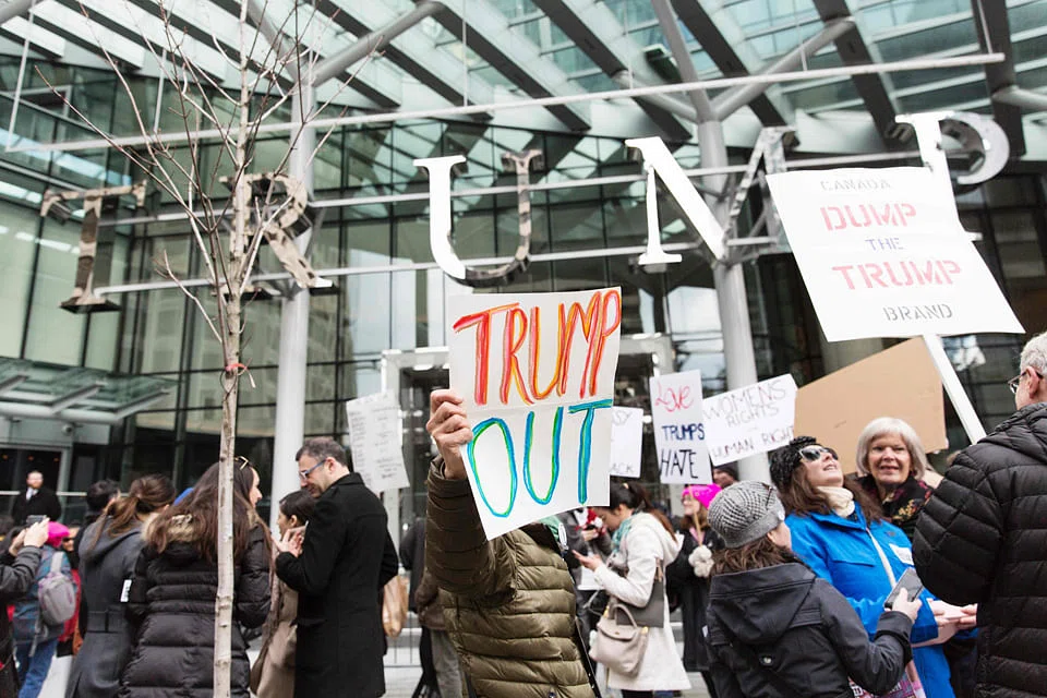 Vancouver's mayor, during the contentious run-up to the Republican primaries to the south, said the tycoon's brand doesn't belong in a city that prides itself on openness. The tower's wealthy Malaysian developer has faced demands to re-brand the project. Protesters, who had planned two separate demonstrations, gathered on Tuesday outside the main entrance, where police stood by a steel barricade for the building's debut.