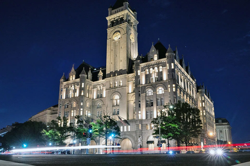 Built from 1892 to 1899 to house the US Post Office department headquarters and the city's post office, it is the second-tallest building in Washington after the Washington Monument. It is easily recognisable on the city's skyline, given its distinctive clock tower, which is still open to the public The leasing of the hotel predated Mr Trump's election. Mr Trump held news conferences at the hotel during the 2016 campaign as it was under construction, and he took reporters covering his candidacy on a tour of the lobby as it was being renovated.