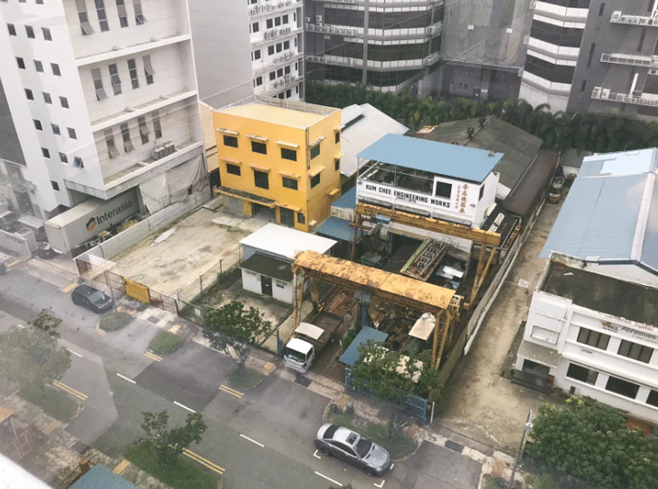 No 1 is a detached factory, comprising a three-storey front office building with a single-storey rear workshop. It has a total gross floor area (GFA) of about 6,000 square feet (sq ft) and land area of 8,475 sq ft, with potential redevelopment of up to 21,000 sq ft.