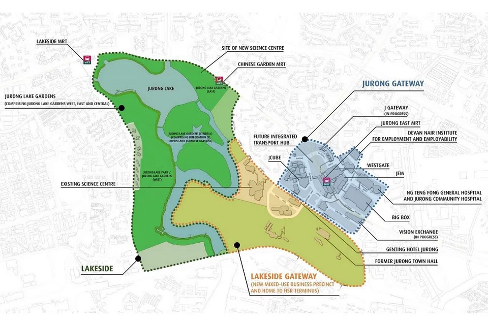 (1) Detailed master plan for Lakeside Gateway, including strategies to seamlessly integrate the new precinct with the Jurong Gateway and Lakeside precincts, as well as the Teban Gardens and Pandan Gardens area to the south;