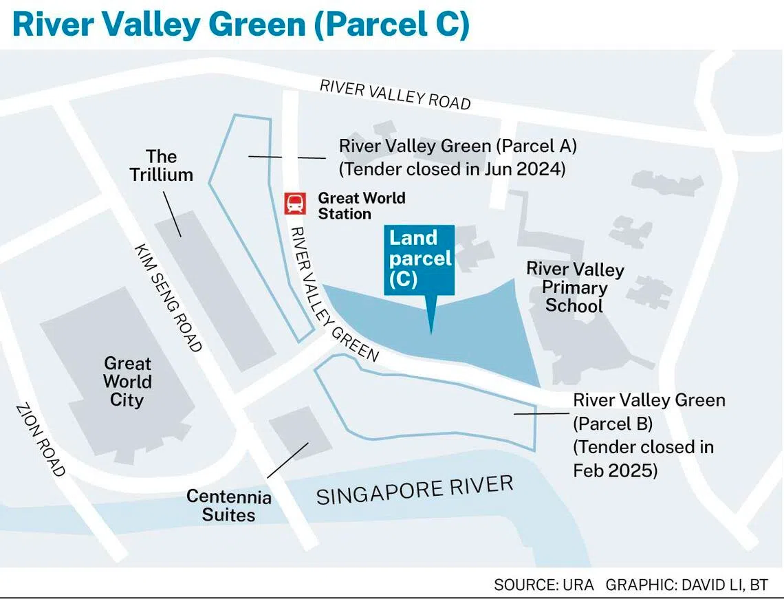 Meanwhile, the 11,516 sq m River Valley Green (Parcel C) plot is expected to yield 470 homes. It is located beside Great World MRT station, with a maximum gross floor area of 40,306 sq m and gross plot ratio of 3.5.