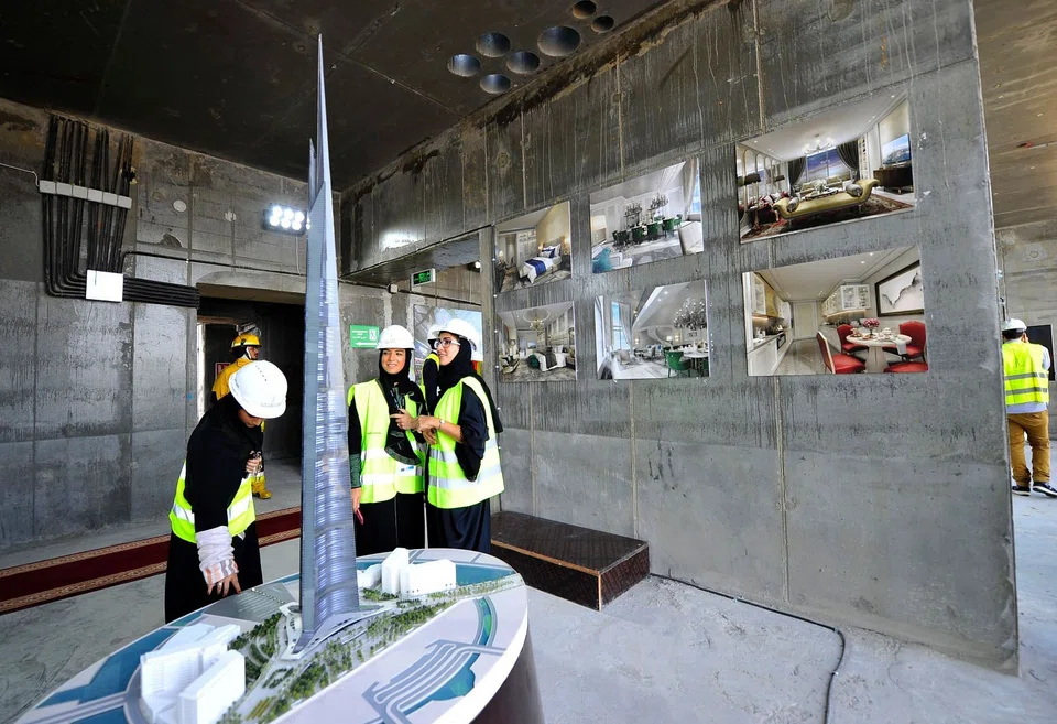 Prince Alwaleed on Thursday rode a construction elevator about 30 floors to meet reporters in the concrete shell of the building, which already offers spectacular views over the rest of Jeddah and the adjacent sea.