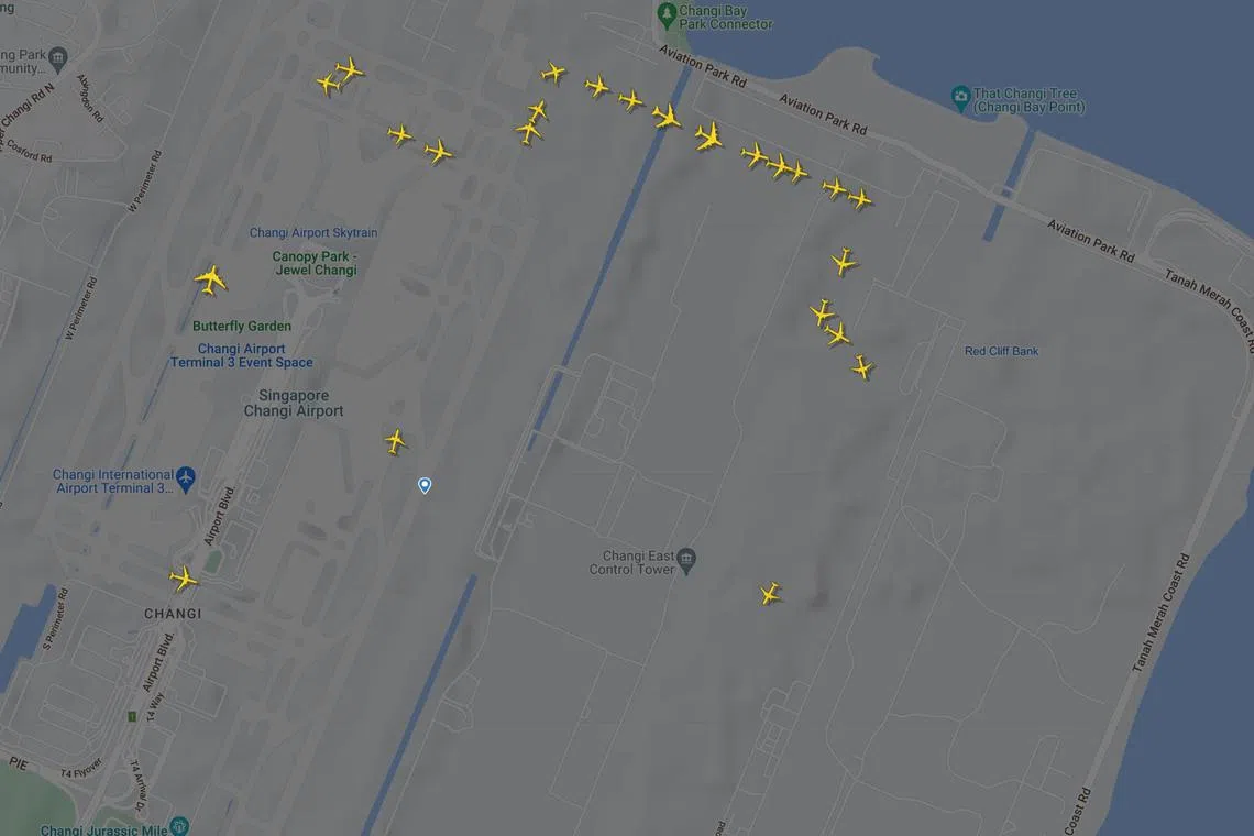 Images from flight tracking website Flightradar24 around 8.50 pm on Sunday showed more than 15 aircraft queueing up to take off from Runway 3.