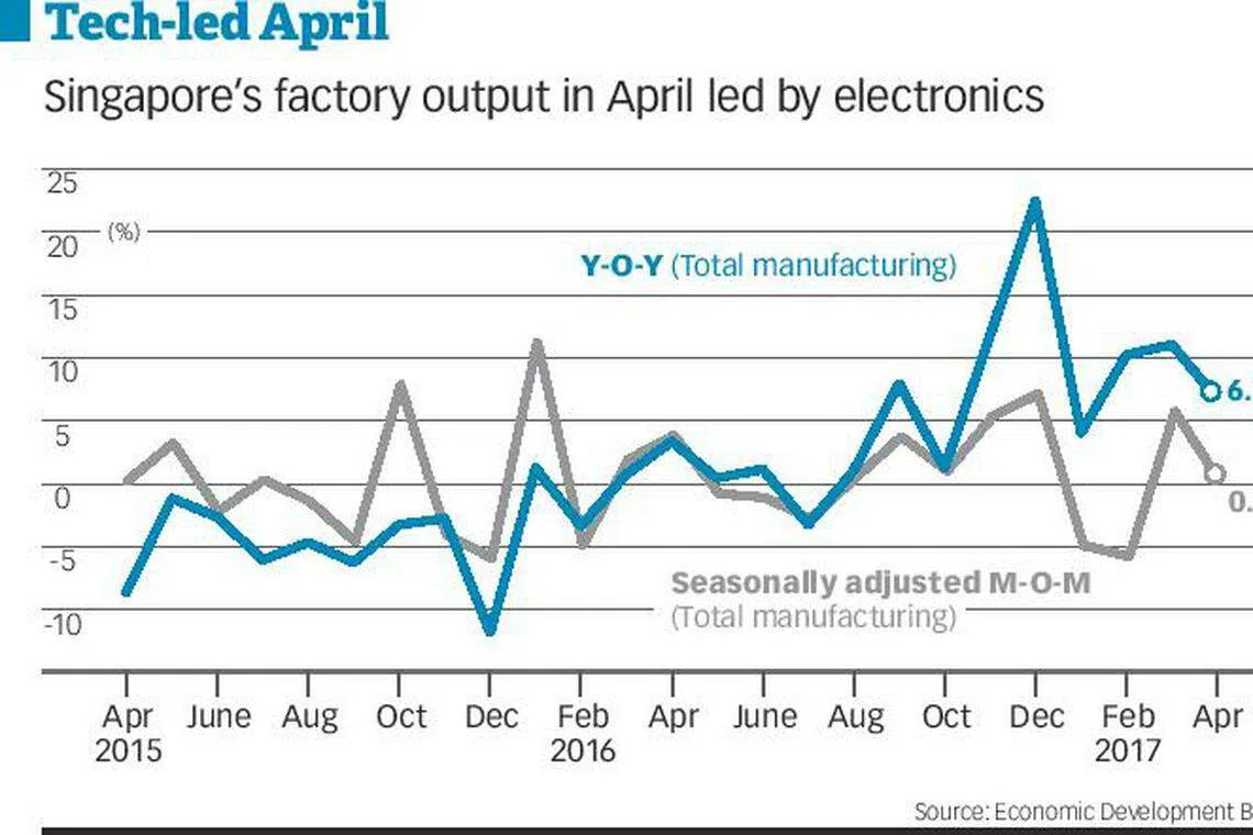 It also comes just a day after fuller estimates of Singapore's Q1 GDP print, which showed that strong external demand for electronics had helped lift overall GDP numbers.