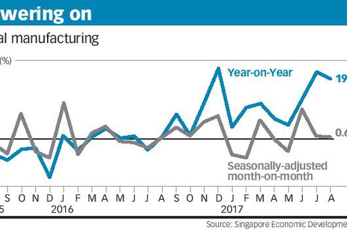 The strong growth in the biomedical manufacturing cluster was partly due to the low base in pharmaceutical output in August 2016 - the lowest level for the whole of last year.