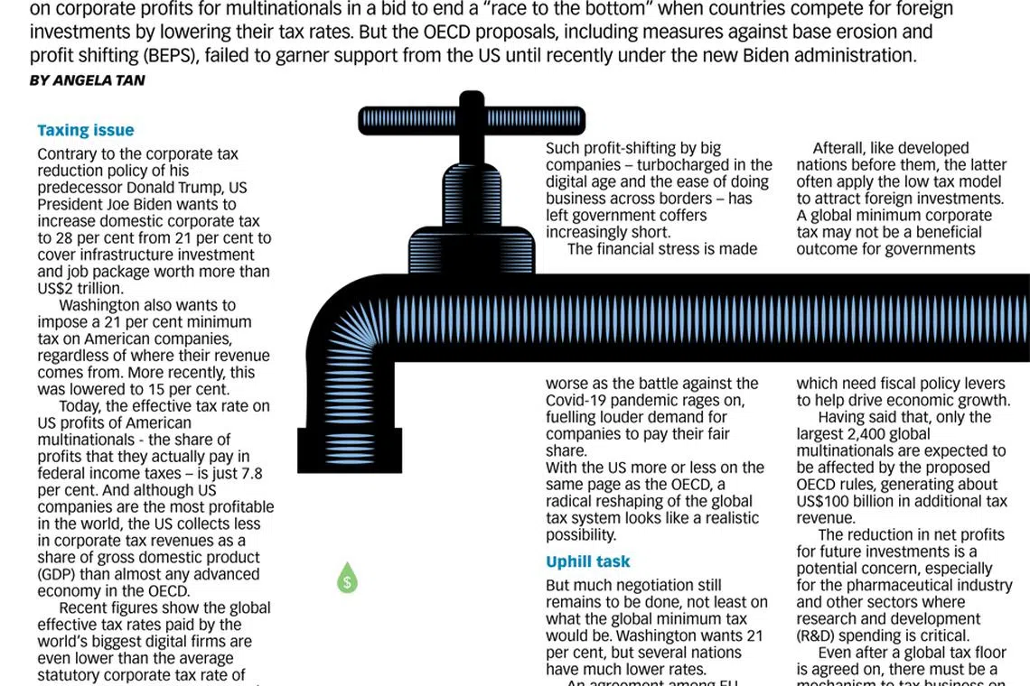 BT Explains: Global minimum corporate taxShare Angela Tan Published Sun, May 30, 2021 · 09:50 PMGlobal minimum corporate tax rate READ MORE: Global tax ambiguity will not stunt mergers and acquisitions: analystsInfographicsCopyright SPH Media. All rights reserved.Reuse this contentFeedback