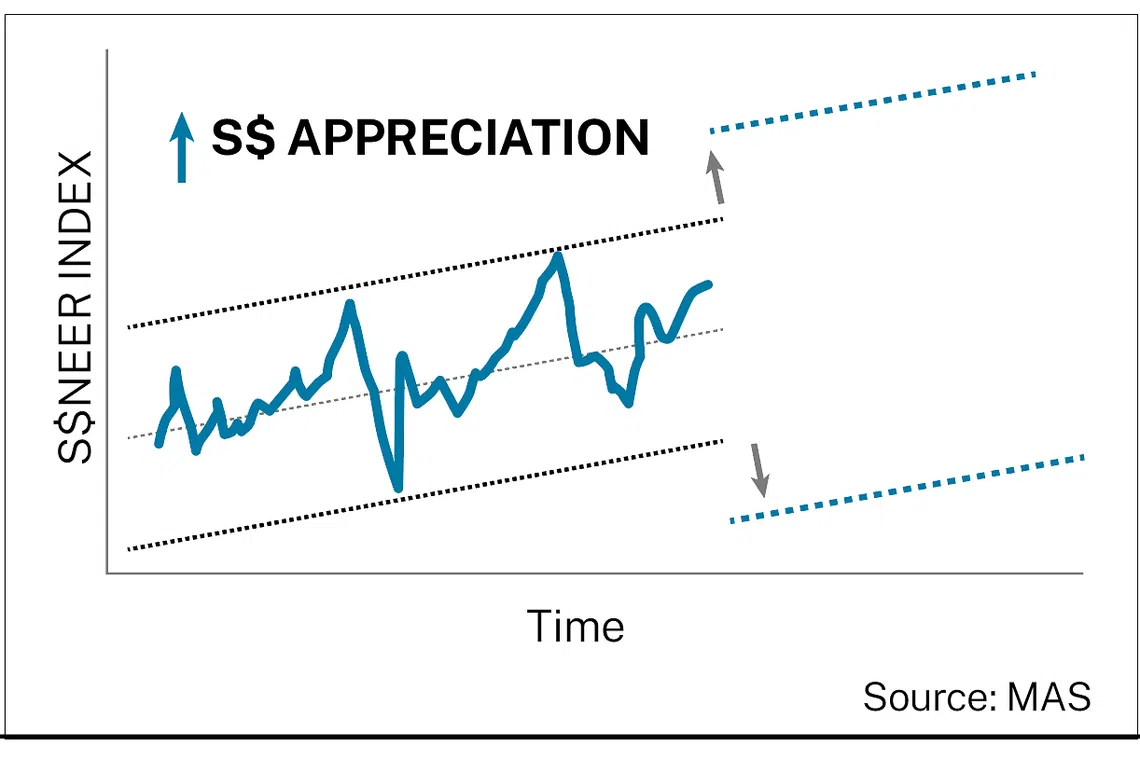 For instance, if strong growth and inflationary pressures are expected, MAS may move to steepen the slope as a stronger Singdollar will make imports relatively cheaper. As a result, consumers would be protected against a sharp spike in the prices of goods and services.