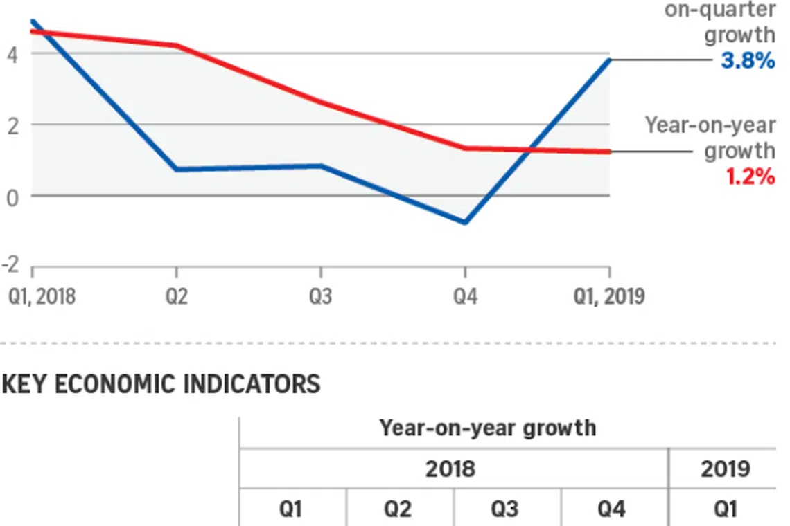 This comes as the economy saw growth of 1.2 per cent in the first quarter of 2019 - the lowest growth rate in almost 10 years. This was a notch lower than earlier estimates of 1.3 per cent and down from revised figures from Q4 2018. This was also below economists' expectations of 1.5 per cent.
