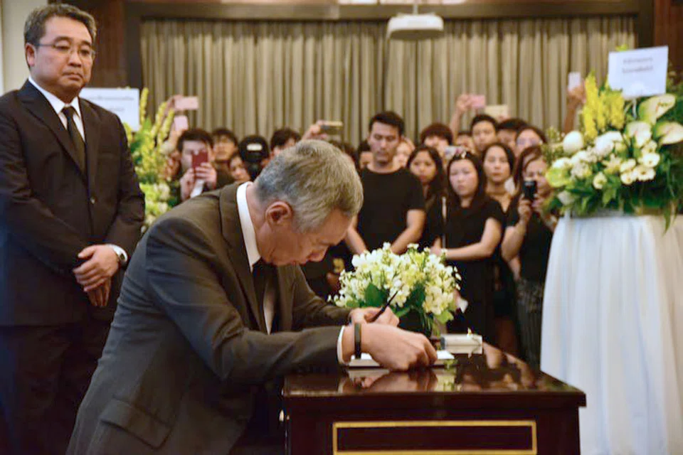 [BANGKOK] Prime Minister Lee Hsien Loong paid his respects to Thailand's late Bhumibol Adulyadej at Bangkok's Grand Palace on Friday.