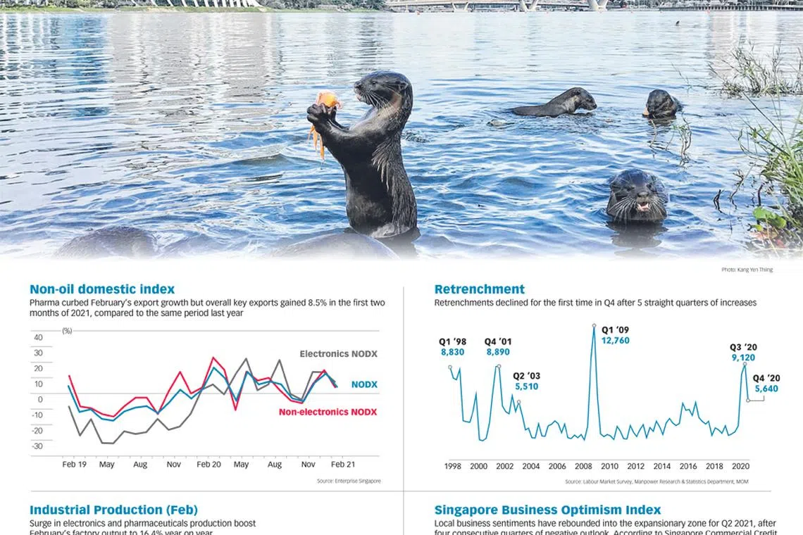 Dark clouds seem to be receding, as Singapore's economic performance in Q1 shows encouraging clues of a nascent recovery from its worst recession on record. Beyond economic data, business confidence levels appear to be rising, with surveys reflecting the highest level of optimism the Republic has seen since the Covid-19 pandemic began.