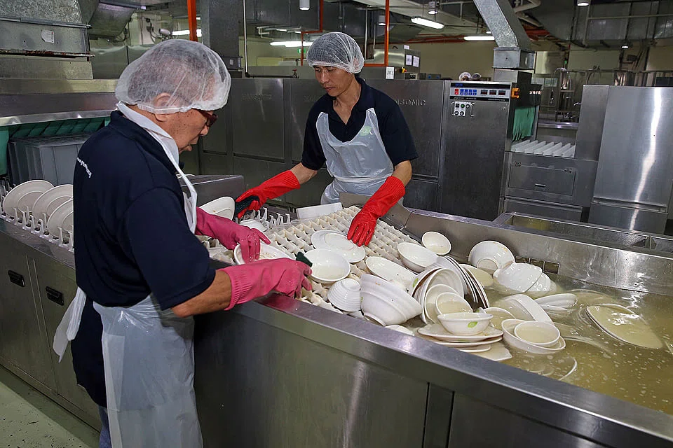 Take, for example, the task of dishwashing. Just this Monday, Mr Tharman visited Singapore's first on-site centralised dishwashing facility at IMM Building. Spanning over 7,000 sq ft of warehousing space, its seven automated dishwashing lines boast the capacity to consolidate dishwashing for 70 to 100 food & beverage outlets, resulting in substantial productivity and manpower savings of 50-80 per cent in manhours.