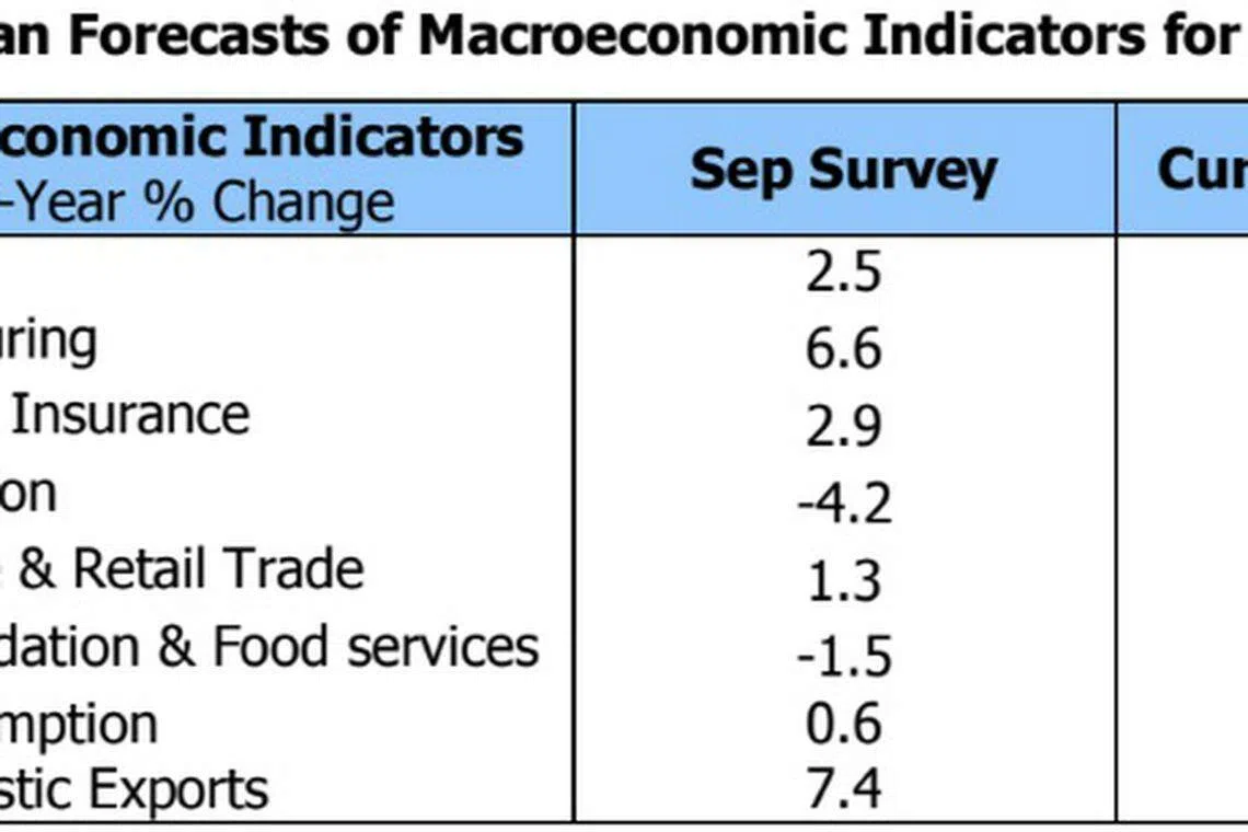 On the labour front, respondents expect the unemployment rate to be 2.2 per cent at year-end, unchanged from the previous survey.